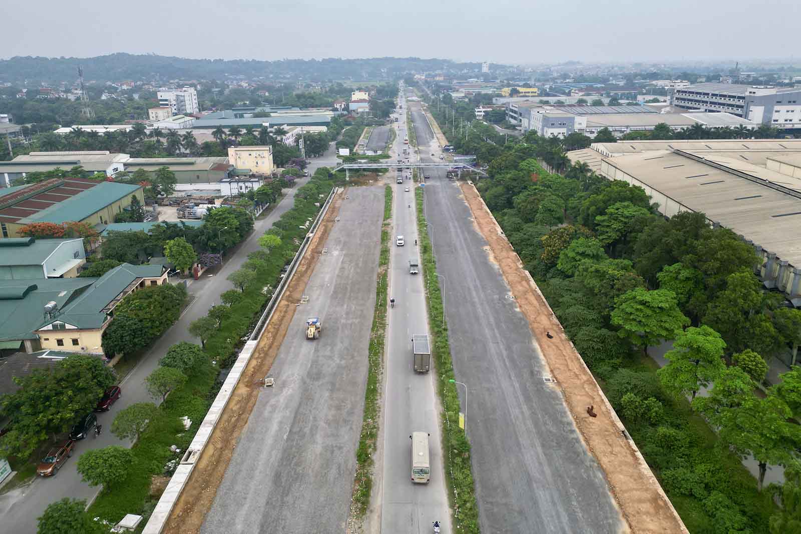 Về phần đường (phần thi công mở rộng), đến nay mới trải thảm bê tông nhựa các đoạn được khoảng 1.955m và đồng bộ hạ tầng kỹ thuật. Các đoạn đã có mặt bằng khác đang triển khai đắp nền, kè…