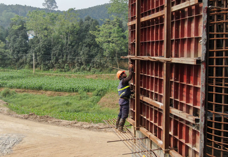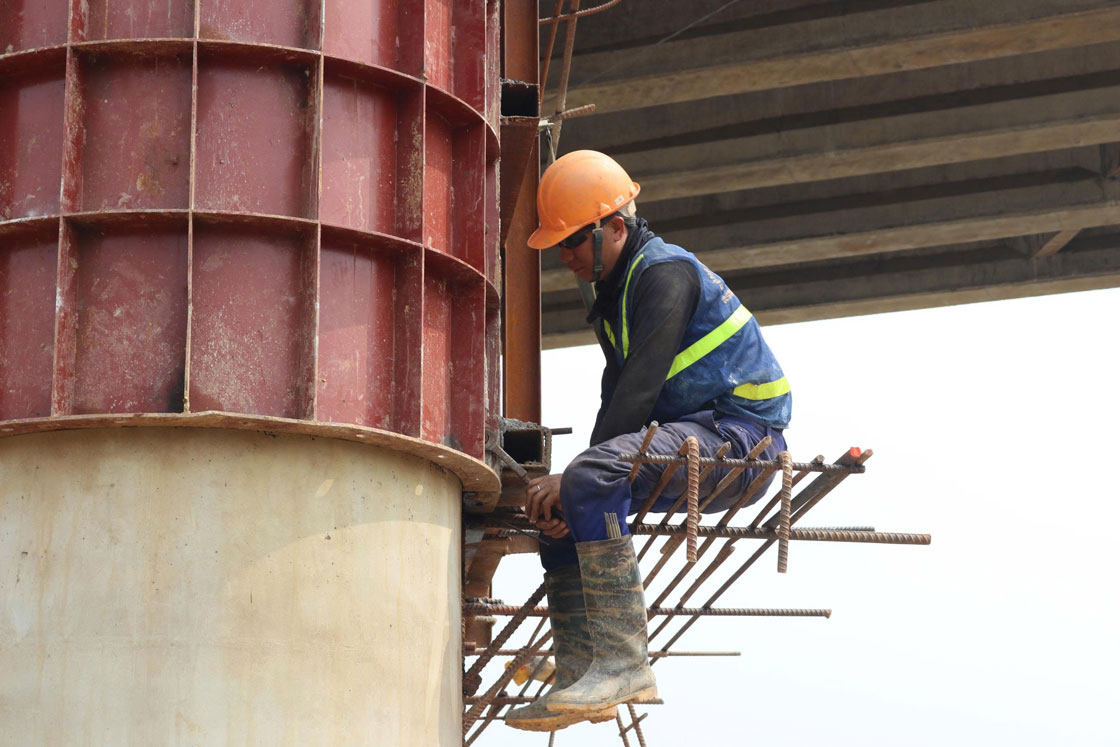 Những hạng mục cuối như gia cố ván khuôn, đúc dầm, lắp dầm, lắp đặt cốt thép và đổ bê tông mặt cầu đang được triển khai. Ảnh: Đinh Đại