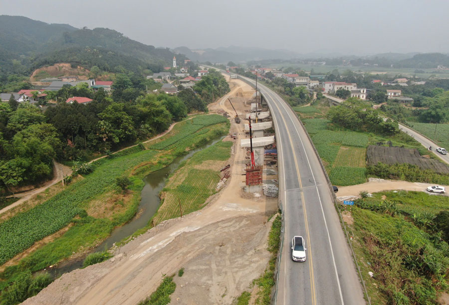 Sau hơn 5 tháng triển khai, nhiều đoạn nền đường thuộc dự án mở rộng cao tốc Nội Bài - Lào Cai đã được thảm nhựa; các hạng mục cầu, cống, taluy đang dần hoàn thiện, dự án sẽ hoàn thiện vào cuối năm 2026.