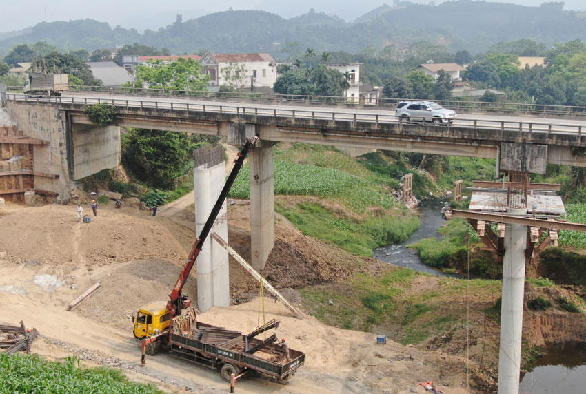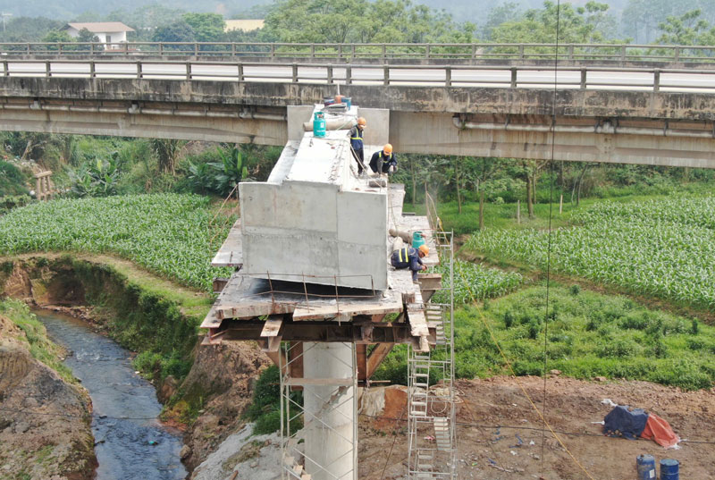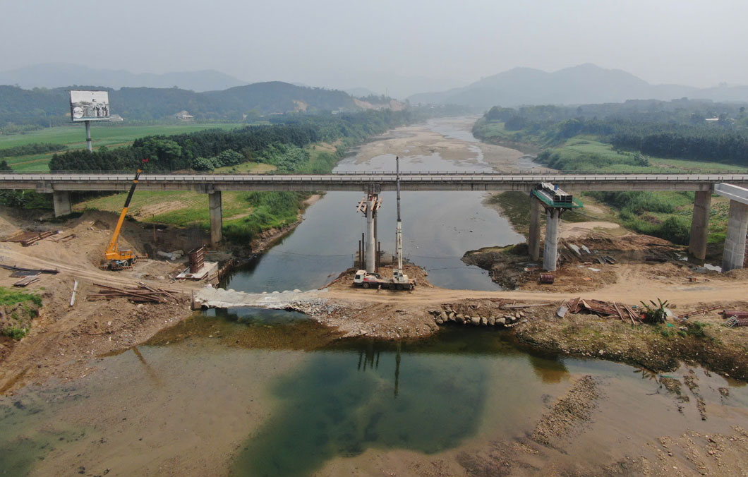 Công trường thi công cầu Ngòi Thia. Ảnh: Đinh Đại