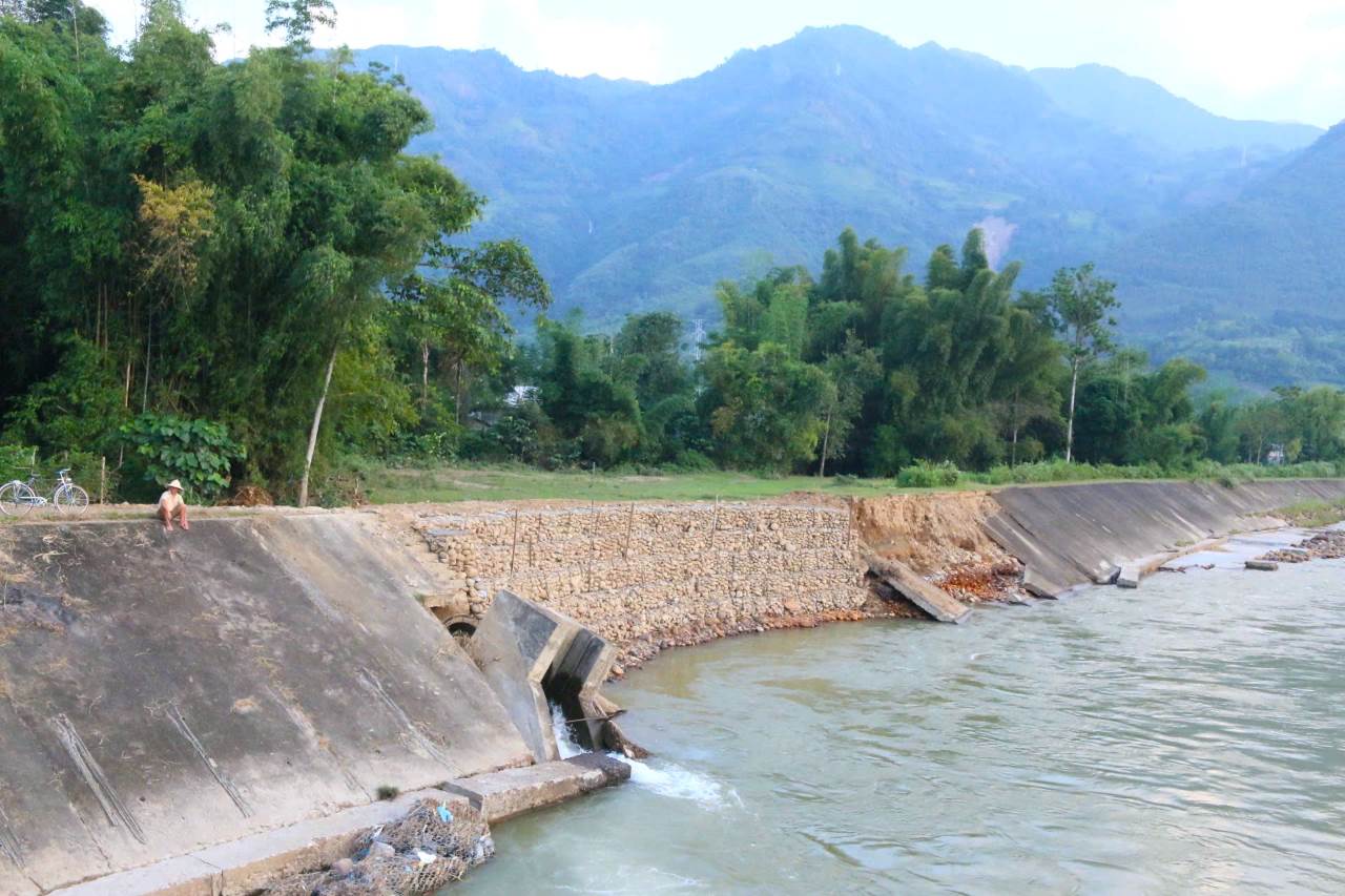 Kè Suối Thia bị hư hỏng nặng nề sau cơn bão số 10. Ảnh: Văn Đức.