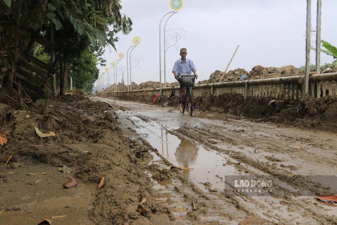 Khu vực đường Thanh Niên, đường Bờ Kè sông Hồng vẫn nhầy nhụa bùn đất sau cơn bão số 10. Ảnh: Văn Đức