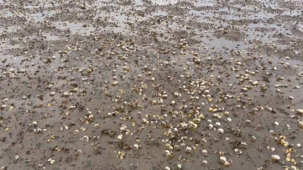 Ngao chết hàng loạt tại khu vực Phú Hải, xã Quảng Hà, tỉnh Quảng Ninh. Ảnh: Đoàn Hưng