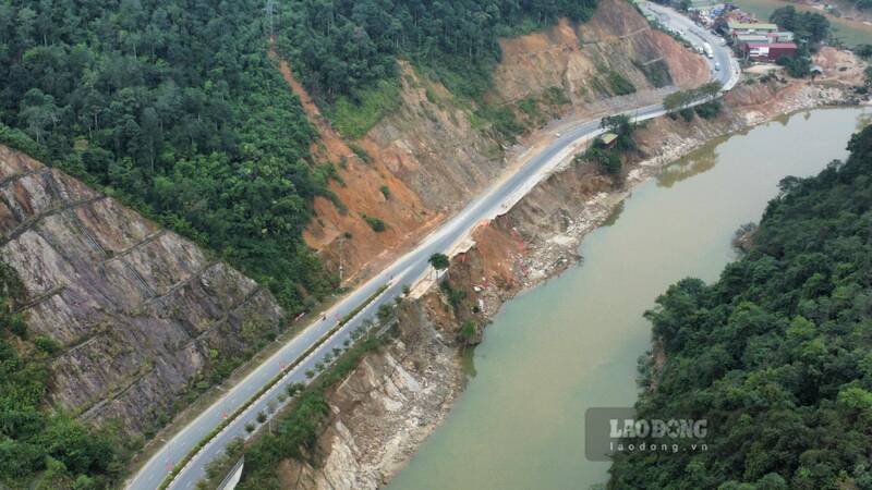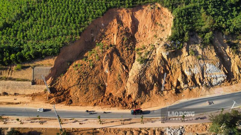 Đoạn cuối tuyến gần khu vực cầu Phó Đáy xuất hiện một số điểm sạt lở. Đất đá từ đồi cao tràn xuống mặt đường ngổn ngang. Một số công trình đường điện, vỉa hè, kè chắn bị đất đá vùi lấp, nứt vỡ. Trong khi đó, các biển cảnh báo, rào chắn được dựng lên sơ sài.