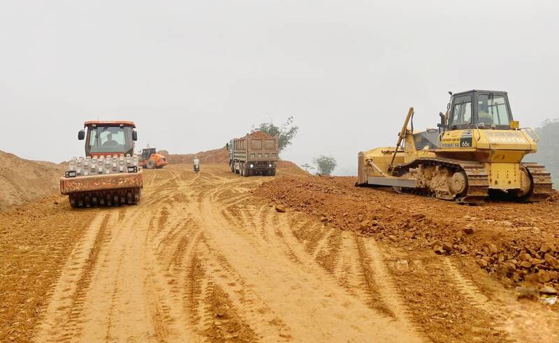 Các mũi thi công trải dài toàn tuyến, triển khai các hạng mục từ nền đường, cầu cống đến kết cấu mặt đường.