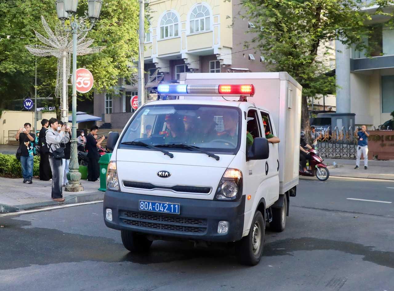 Hoa hậu Thùy Tiên được áp giải đến phiên tòa tại TPHCM sáng nay