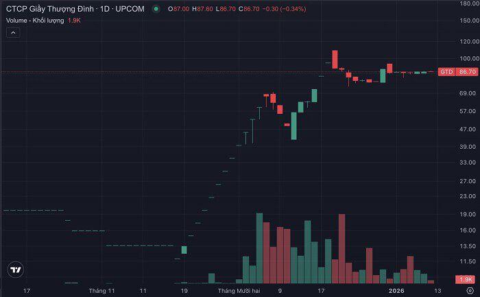 Diễn biến khớp lệnh cổ phiếu GTD qua 3 tháng (đến sáng 12/1). (Nguồn: TradingView).