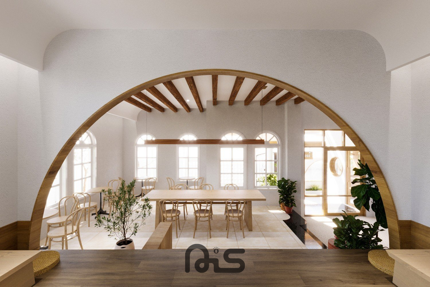Thiết kế nội thất quán cà phê với không gian mở, kết hợp giữa phong cách vintage và hiện đại, tạo nên một điểm đến lý tưởng cho những người yêu thích sự tinh tế.