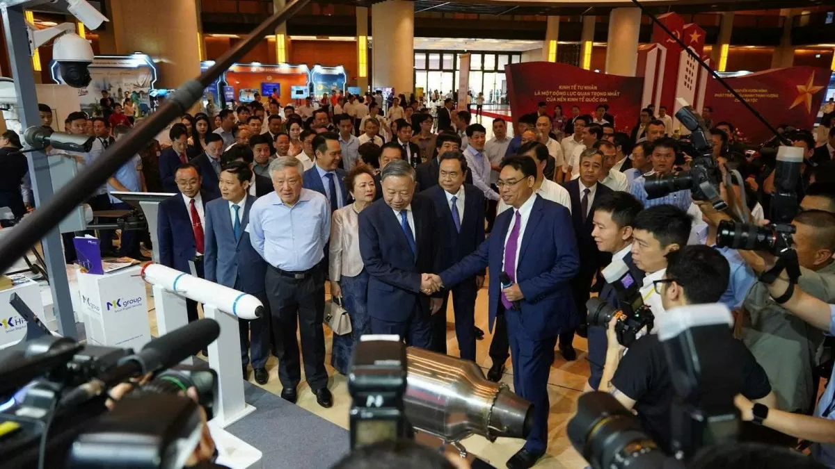 Tại triển lãm giới thiệu các thành tựu trong phát triển kinh tế tư nhân và trưng bày các sản phẩm của các doanh nghiệp tư nhân, báo cáo Tổng Bí thư Tô Lâm, ông Nguyễn Thế Phương - Phó Tổng giám đốc Tập đoàn FPT cho biết: “FPT là tập đoàn công nghệ toàn cầu, hiện diện tại 30 quốc gia. Chúng tôi nỗ lực phát triển nguồn nhân lực chất lượng cao bằng cách đưa AI vào chương trình giáo dục từ lớp 1 nhằm nâng cao nhận thức và kỹ năng sớm cho thế hệ trẻ".