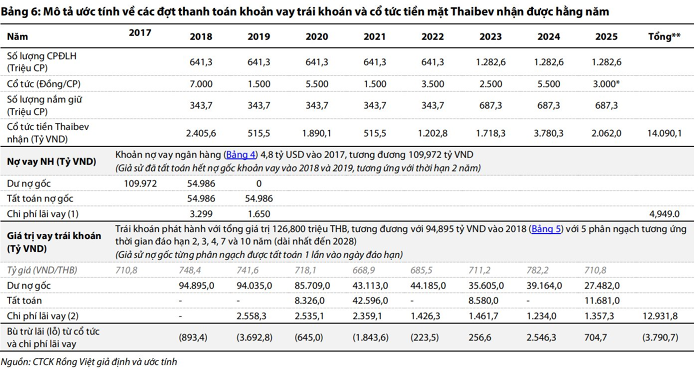 VDSC ước tính tổng cổ tức mà ThaiBev nhận từ 2018 đến nay chưa đủ để bù đắp cho tổng chi phí lãi vay của khoản vay tài trợ thương vụ M&A. Điều này cho thấy gánh nặng trả nợ gốc và lãi vay trong vòng 10 năm kể từ 2017 đến 2028 của ThaiBev vẫn là động lực để Sabeco duy trì chính sách chi trả cổ tức cao trong thời gian qua và trong các năm tới.