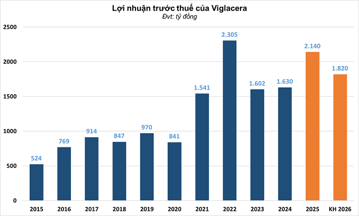 Sang năm 2026, Viglacera đặt mục tiêu doanh thu 15.300 tỷ đồng, nếu đạt được đây sẽ là con số cao nhất kể từ khi doanh nghiệp đi vào hoạt động.