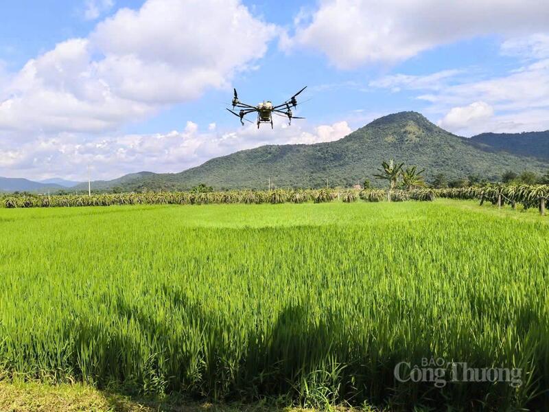 Một trong những điểm nhấn nổi bật là việc đưa máy bay không người lái (drone) vào các khâu chăm sóc lúa, đặc biệt là phun thuốc bảo vệ thực vật và phân bón lá.