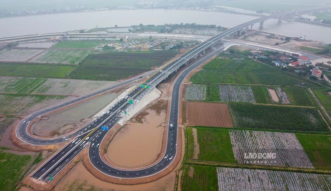 Dự án xây dựng cầu vượt sông Đáy nối hai tỉnh Nam Định và Ninh Bình thuộc tuyến đường bộ cao tốc Ninh Bình - Hải Phòng đã thi công hoàn thành. Ảnh: Lương Hà