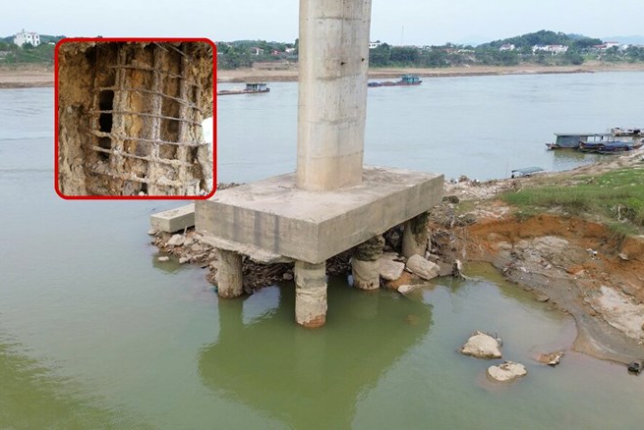Cọc trụ cầu sông Lô ở Phú Thọ lộ trơ cốt thép