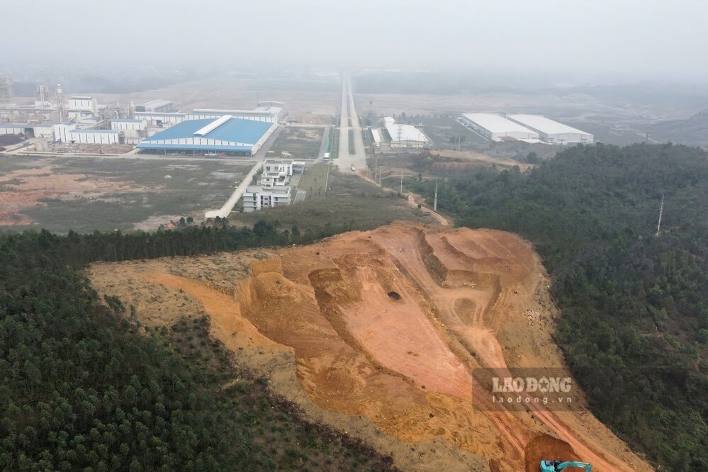 Tuyến nhánh nối khu công nghiệp Cẩm Khê thi công vượt đồi cao. Ảnh: Tô Công.
