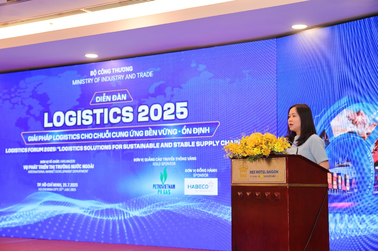 Chiều ngày 25/7, tại TP. Hồ Chí Minh, Vụ Phát triển thị trường nước ngoài (Bộ Công Thương) đã tổ chức Diễn đàn Logistics 2025 với chủ đề “Giải pháp logistics cho chuỗi cung ứng bền vững – ổn định” nhằm thúc đẩy trao đổi, kết nối và hợp tác giữa các cơ quan quản lý, doanh nghiệp logistics, doanh nghiệp xuất nhập khẩu trong bối cảnh kinh tế toàn cầu đang có nhiều biến động, chuỗi cung ứng toàn cầu chịu sức ép lớn, đòi hỏi các giải pháp logistics hiệu quả, thích ứng và thân thiện với môi trường.