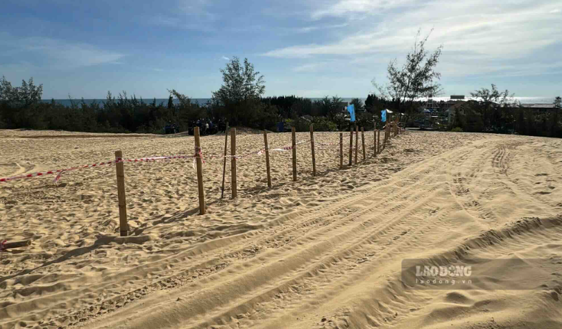 Ghi nhận của PV Báo Lao Động, tại đồi cát Quang Phú, xuất hiện một hàng rào được đóng cọc tre, dây được giăng lại theo chiều dọc bãi cát. Một xe ủi cát xuất hiện đang san gạt.
