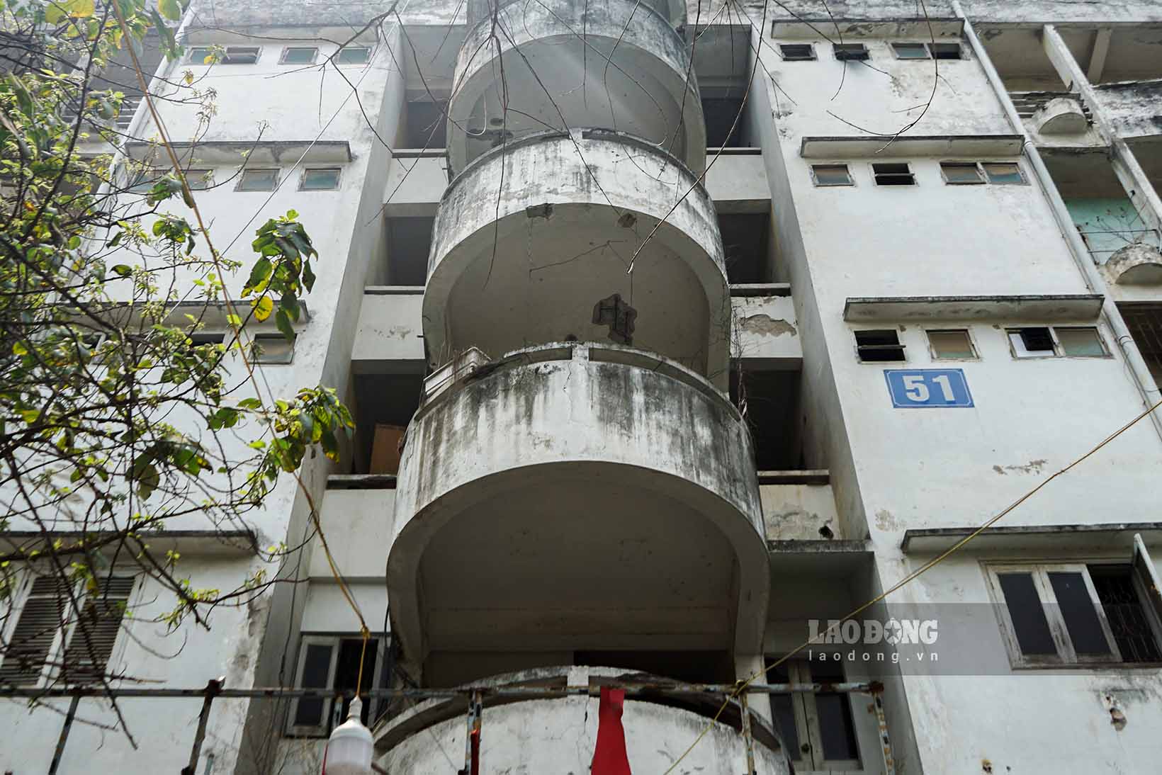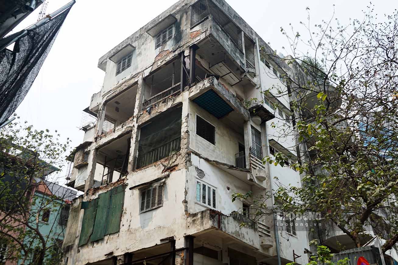 Hà Nội - Chung cư cũ cấp độ D tại số 51 Huỳnh Thúc Kháng (quận Đống Đa) sau nhiều năm xuống cấp nghiêm trọng sắp được cải tạo, xây mới.