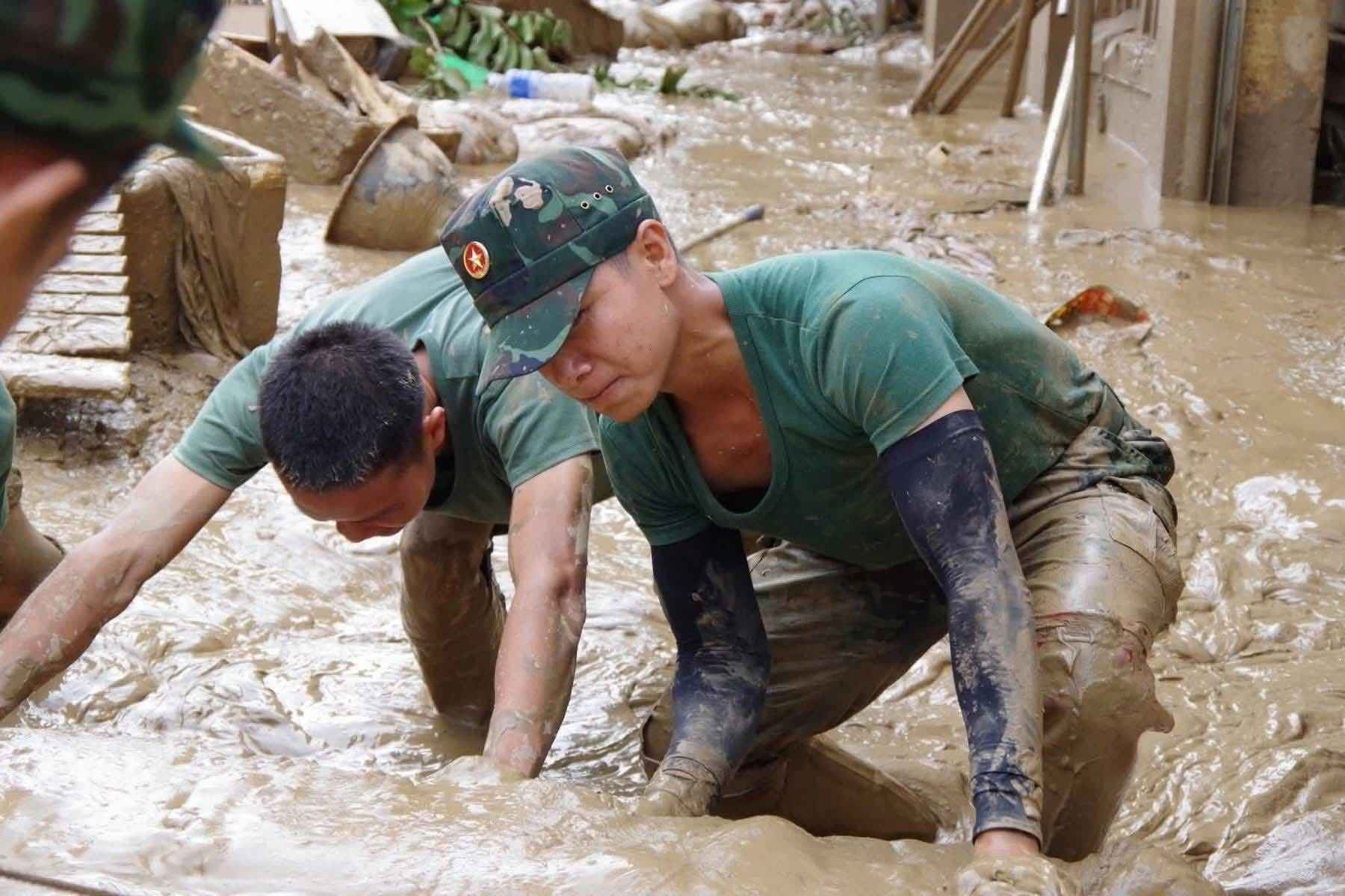 Nhiều ngày qua, các cán bộ chiến sĩ công an, quân đội và đoàn viên thanh niên phải vật lộn với bùn đất, nhiều người lấm lem từ đầu tới chân khi dọn dẹp từng mét đường, từng căn nhà. Những hình ảnh ấy gây xúc động mạnh mẽ trong cộng đồng.