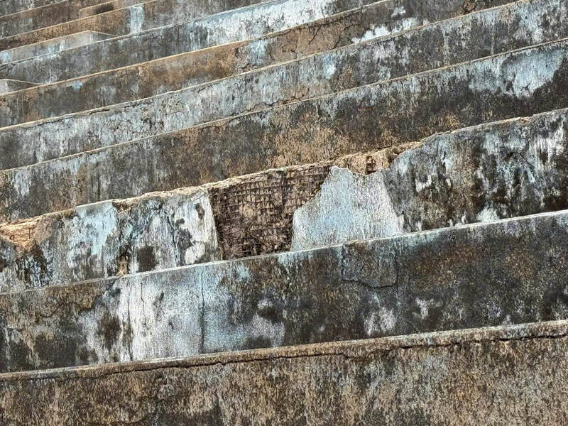 Trên khán đài, các bậc thềm bong tróc. Ảnh: Khánh Linh