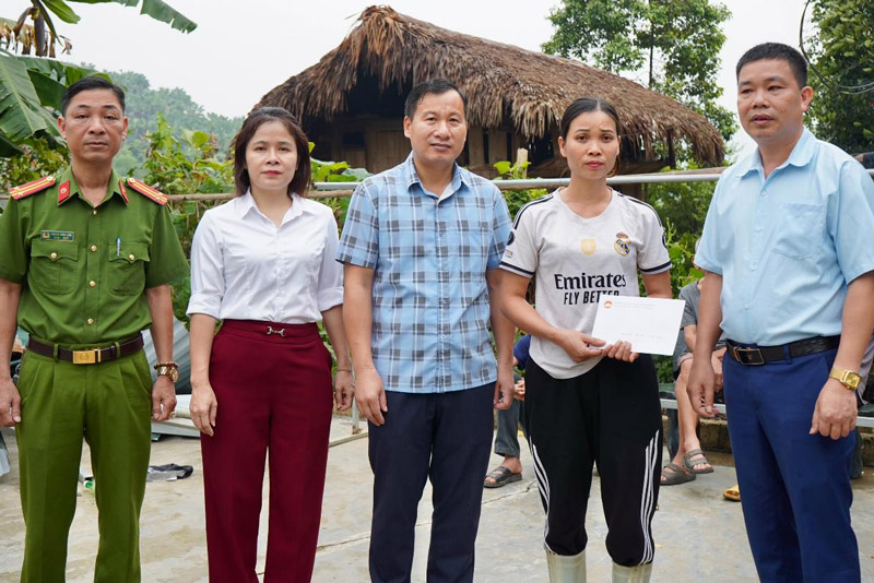Chính quyền xã Khánh Yên thăm hỏi, hỗ trợ gia đình bị sét đánh. Ảnh: Đơn vị cung cấp
