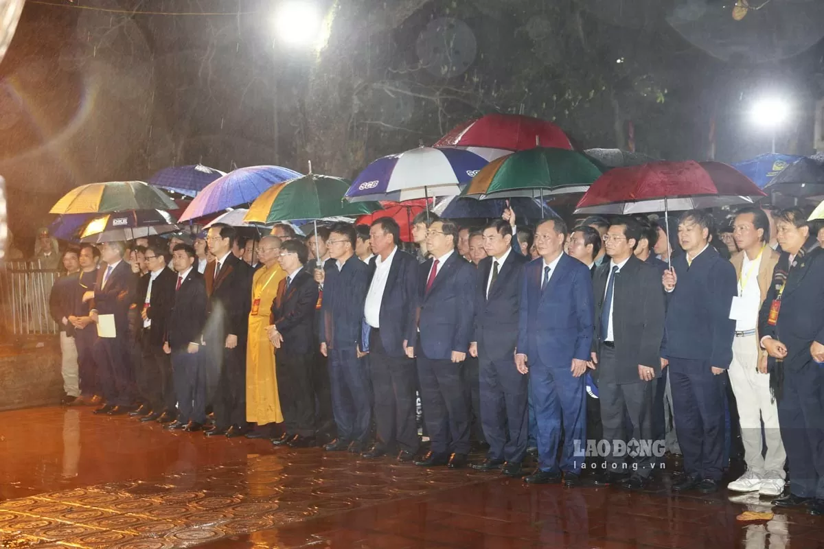 Lãnh đạo Đảng, Nhà nước, địa phương tham dự Lễ hội khai ấn đền Trần xuân Ất Tỵ 2024. Ảnh: Laodong.vn |
