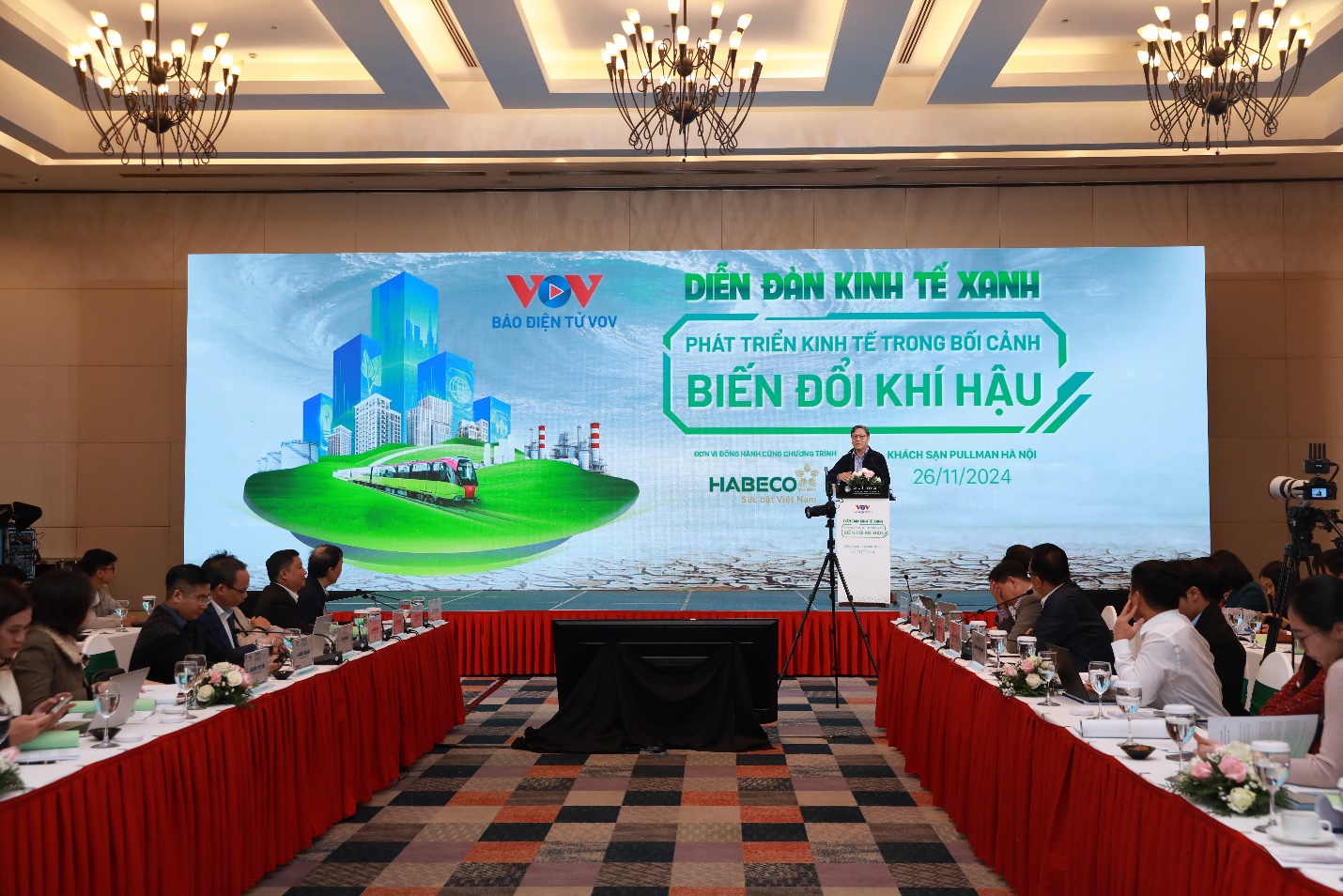 Sáng 26/11/2024, tại khách sạn Pullman, Hà Nội, Báo Điện tử VOV phối hợp với các đơn vị liên quan tổ chức "Diễn đàn kinh tế xanh: Phát triển kinh tế trong bối cảnh biến đổi khí hậu".