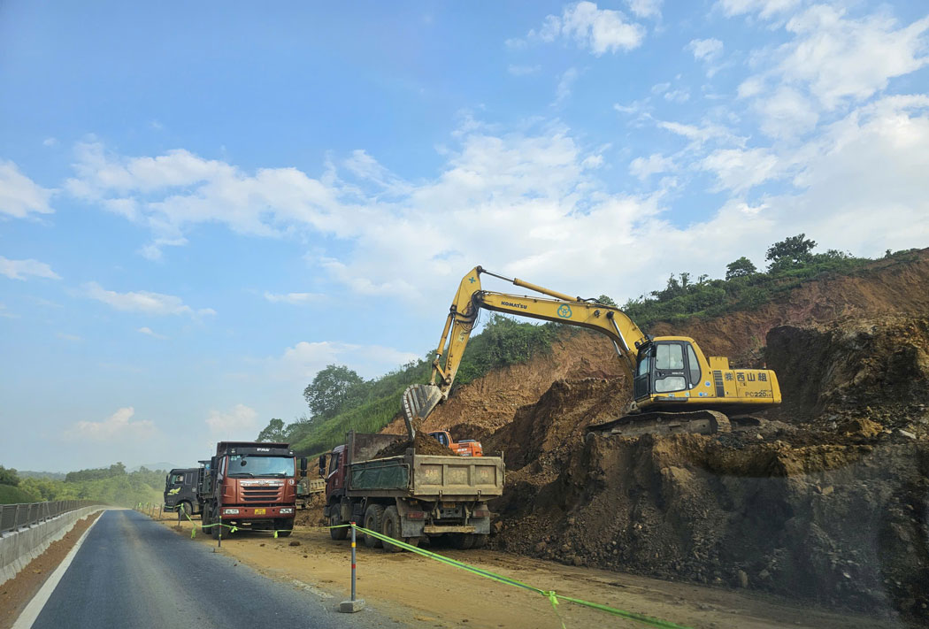 Sau gần 2 tháng, các đơn vị chức năng vẫn đang khắc phục sạt lở đất trên tuyến cao tốc Nội Bài - Lào Cai.