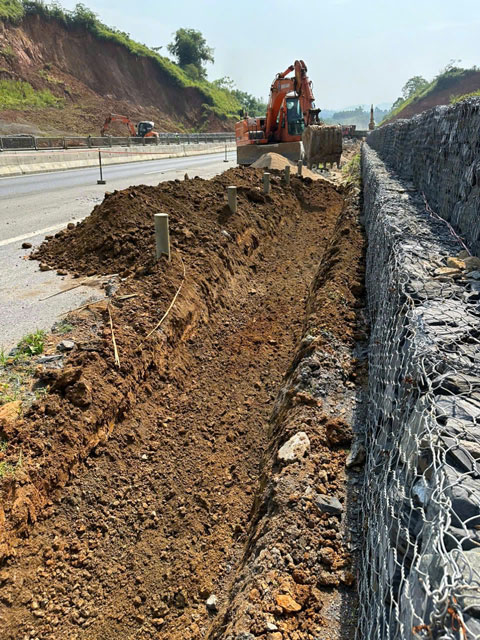 Ngày 21.9, trao đổi với PV Báo Lao Động, ông Nguyễn Hồng Tú - Phó Giám đốc Công ty Cổ phần Dịch vụ Đường cao tốc Việt Nam (VECS) cho biết, đến thời điểm hiện tại, việc hót dọn đất khu vực sạt lở tại Km241+700 trên tuyến cao tốc Nội Bài - Lào Cai đã cơ bản hoàn thành. Đơn vị thi công đang lắp đặt hoàn thiện phần rọ đá, lưới thép và rãnh nhằm hạn chế trượt lở.