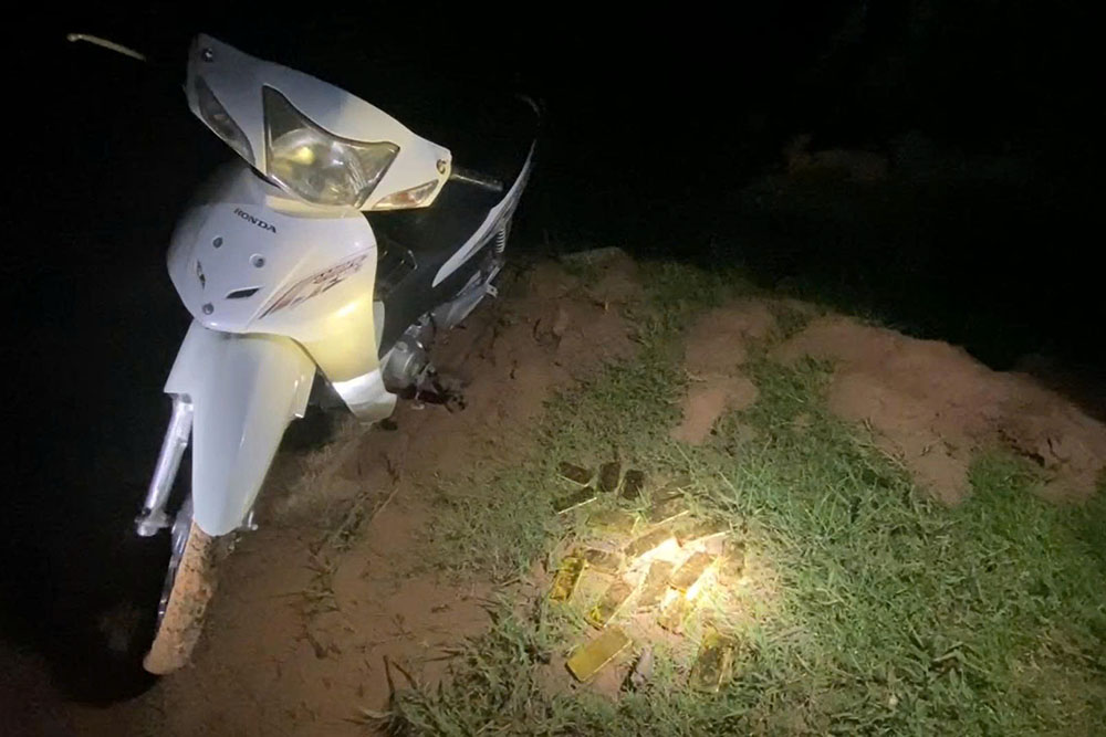 Hai đối tượng bỏ lại số lượng lớn vàng nguyên chất khi gặp biên phòng. Ảnh: Biên phòng Tây Ninh