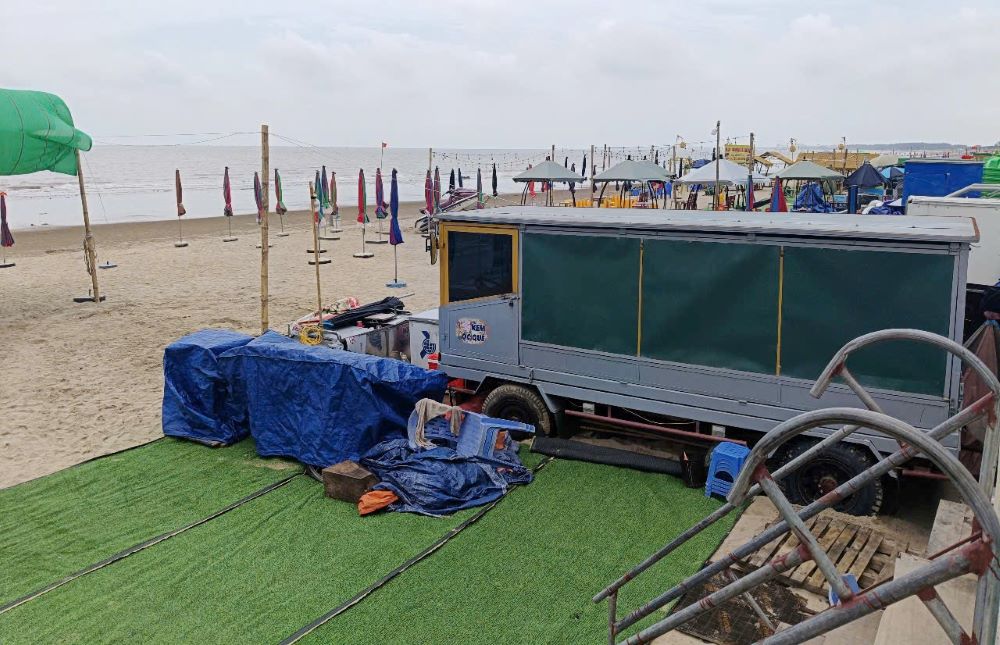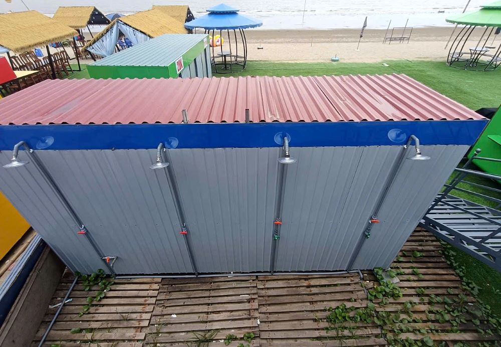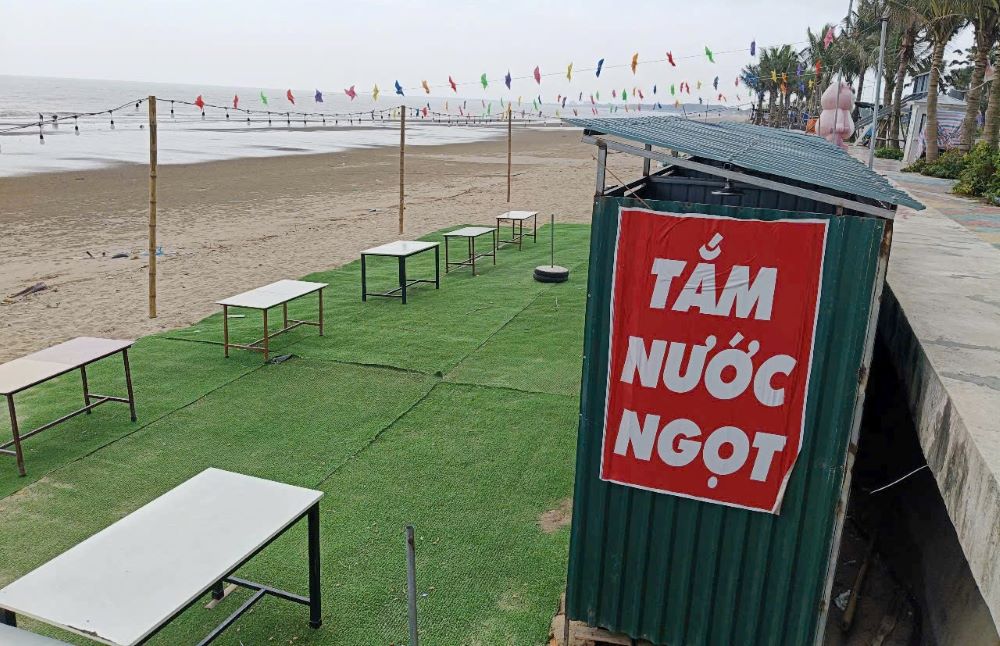 Bên cạnh đó, còn rất nhiều thiết bị, đồ dùng được tập kết trên bãi cát để phục vụ việc kinh doanh. Thậm chí, tại khu vực sát bờ kè biển, các hộ còn dùng tôn quây thành các phòng tắm tráng (tắm nước ngọt) để phục vụ khách du lịch, trông khá nhếch nhác.