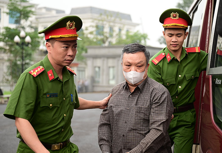 Cựu Thứ trưởng Hoàng Văn Thắng khi bị dẫn giải vào phòng xử án. Ảnh: Quang Việt