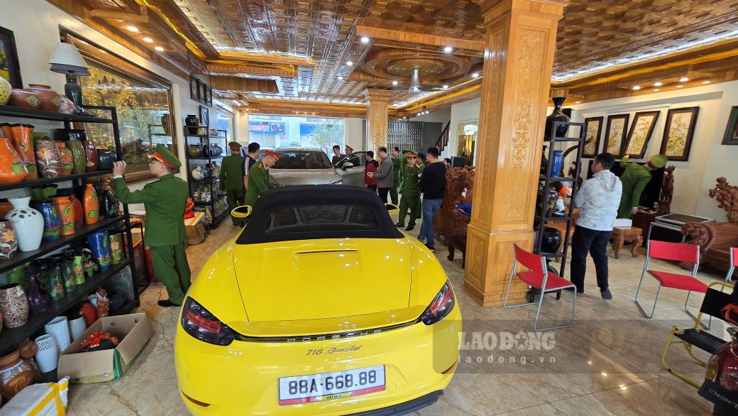 Hai chiếc xe ô tô hạng sang mà cơ quan điều tra đã thu giữ, quản lý sau khi khám xét khẩn cấp nơi ở của “Tuấn chợ Gốc“. Ảnh: Nam Hồng