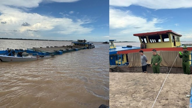 Phát hiện 2 tàu sắt chứa hơn 337m3 cát không rõ nguồn gốc trên sông Ba Lai