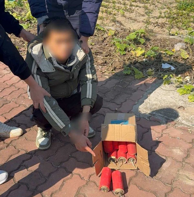 Quá trình kiểm tra phát hiện nam thanh niên mang theo 1 thùng bìa cát tông bên trong có chứa 23 khối hình trụ tròn (nghi là pháo nổ), tổng trọng lượng là 7,2 kg.