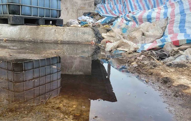 Nước đọng có màu đen tại Nhà máy xử lý rác ở xã Kỳ Tân mà trước đó đoàn kiểm tra đã làm việc với nhà máy này. Ảnh: Trần Tuấn.