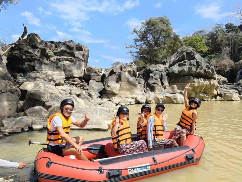 Du khách chèo thuyền trải nghiệm tại khu du lịch ở Đắk Lắk. Ảnh: Công Lý