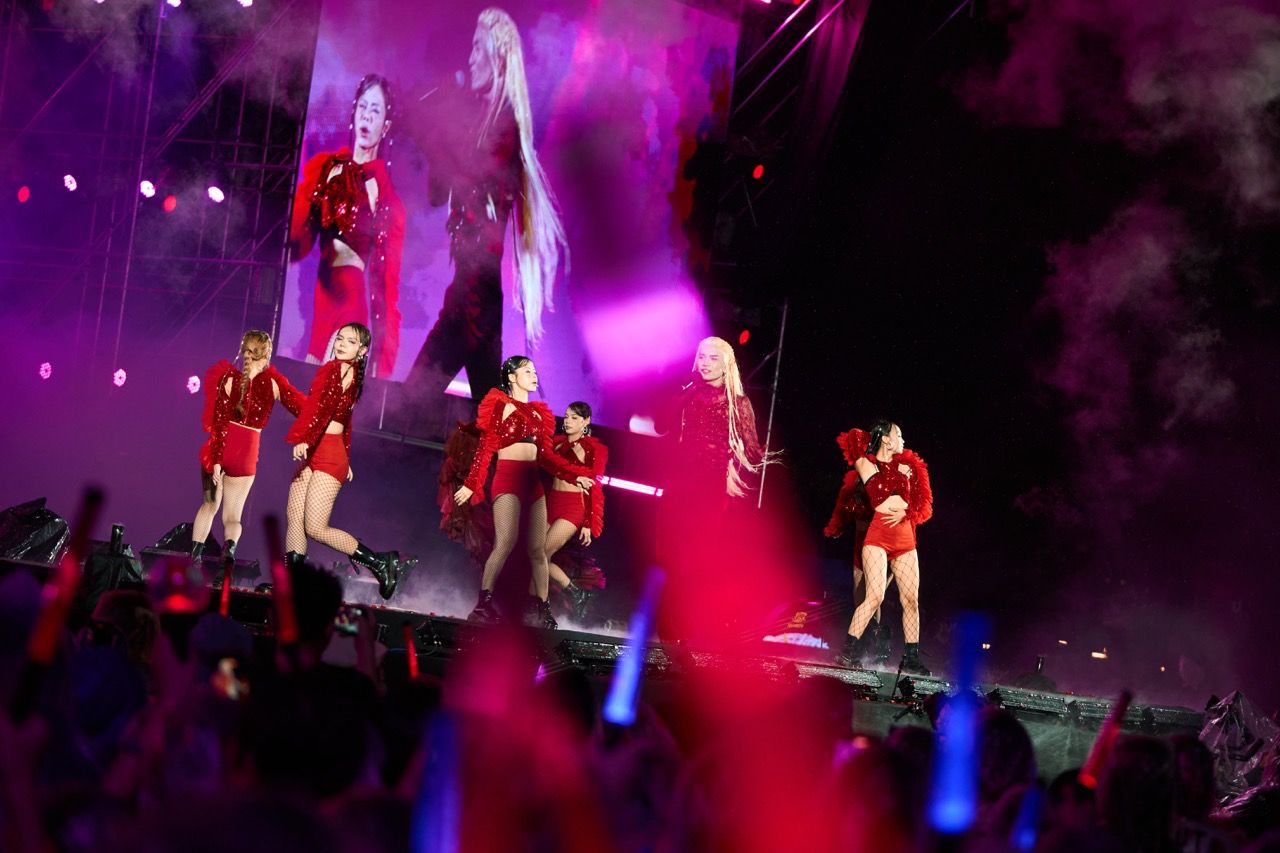 5 thành viên Jun Phạm, S.T Sơn Thạch, Bùi Công Nam, BB Trần và Kay Trần đốt cháy sân khấu với những tiết mục vũ đạo dưới cơn mưa tháng 6 của TPHCM.