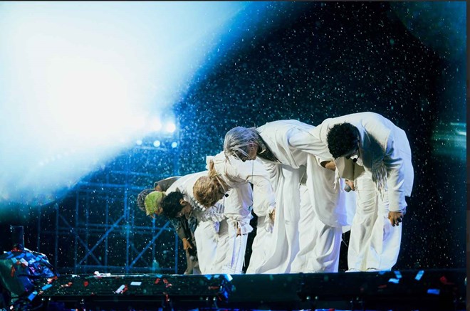 Nhóm B.O.F cảm ơn khán giả vì đội mưa xem show. Ảnh: Đơn vị Yeah1.