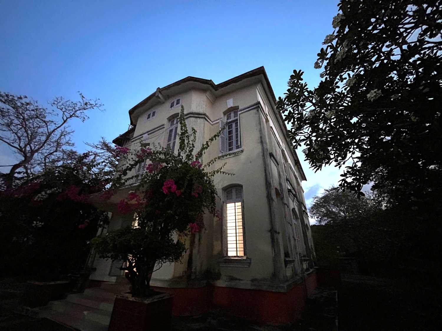 Hoa sứ là một trong những loài đặc trưng với nhiều gốc cây cổ thụ vẫn đang hiện hữu tại khuôn viên 2 biệt thự cổ ở di tích lầu Bảo Đại ở Khánh Hòa. Ảnh: Phương Linh