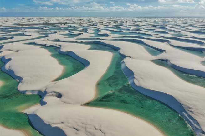 Đất nước xinh đẹp Brazil sở hữu một điểm du lịch độc nhất vô nhị, thu hút không ít du khách mỗi năm. Đó chính là Vườn quốc gia Lencois Maranhenses với những “bãi biển mini” nằm chen mình giữa những đồi cát nhấp nhô. Nơi đây nổi tiếng bởi cảnh quan độc đáo khiến du khách không khỏi trầm trồ trước sự diệu kỳ của tạo hóa.