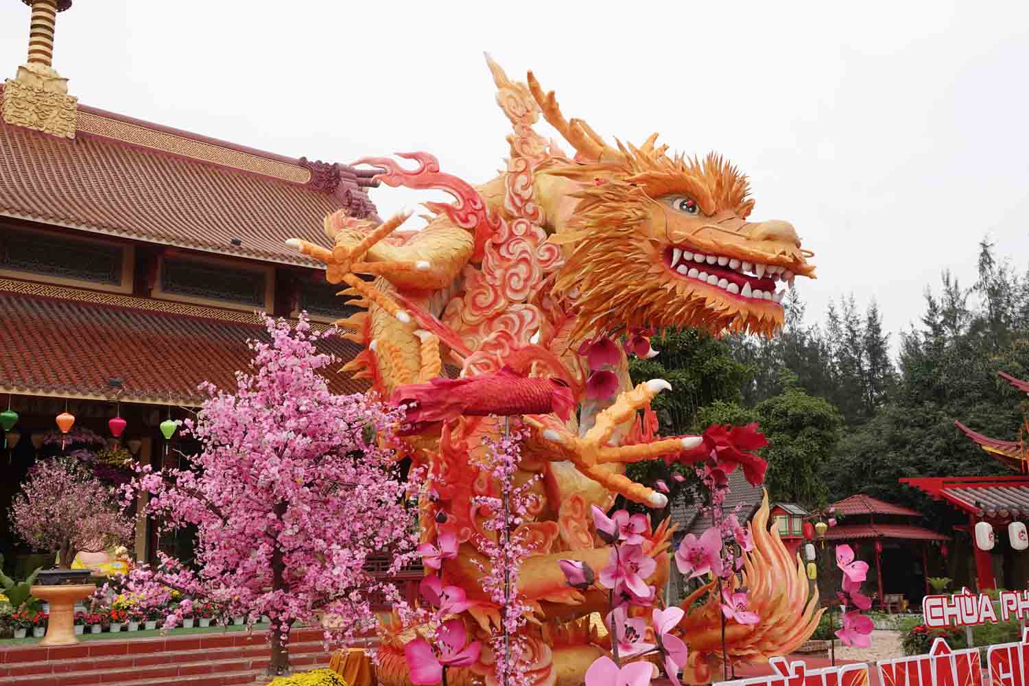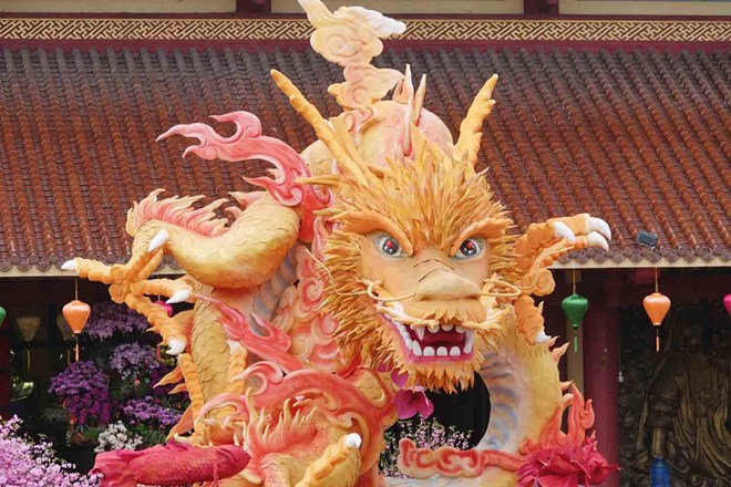 Theo thông tin từ đại diện chùa Phổ Độ, Tết Nguyên đán này là năm Giáp Thìn nên nhà chùa lên ý tưởng và thuê thợ làm linh vật rồng đặt ở sân chầu.