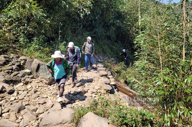 Du khách nước ngoài trải nghiệm leo núi, chinh phục đỉnh Fansipan - Sa Pa. Ảnh: Bảo Nguyên