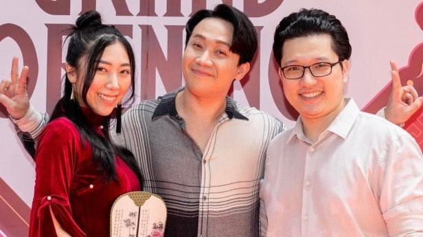 Trấn Thành và vợ chồng em gái Huỳnh Mi. Ảnh: Facebook nhân vật