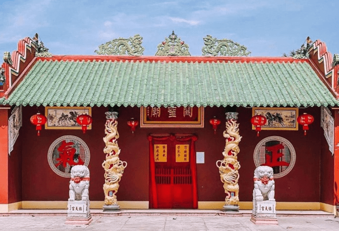 Ngôi miếu với phong cách kiến trúc mang dấu ấn văn hóa của người Hoa ở Ninh Hòa đã thu hút du khách đến tham quan và chụp ảnh.