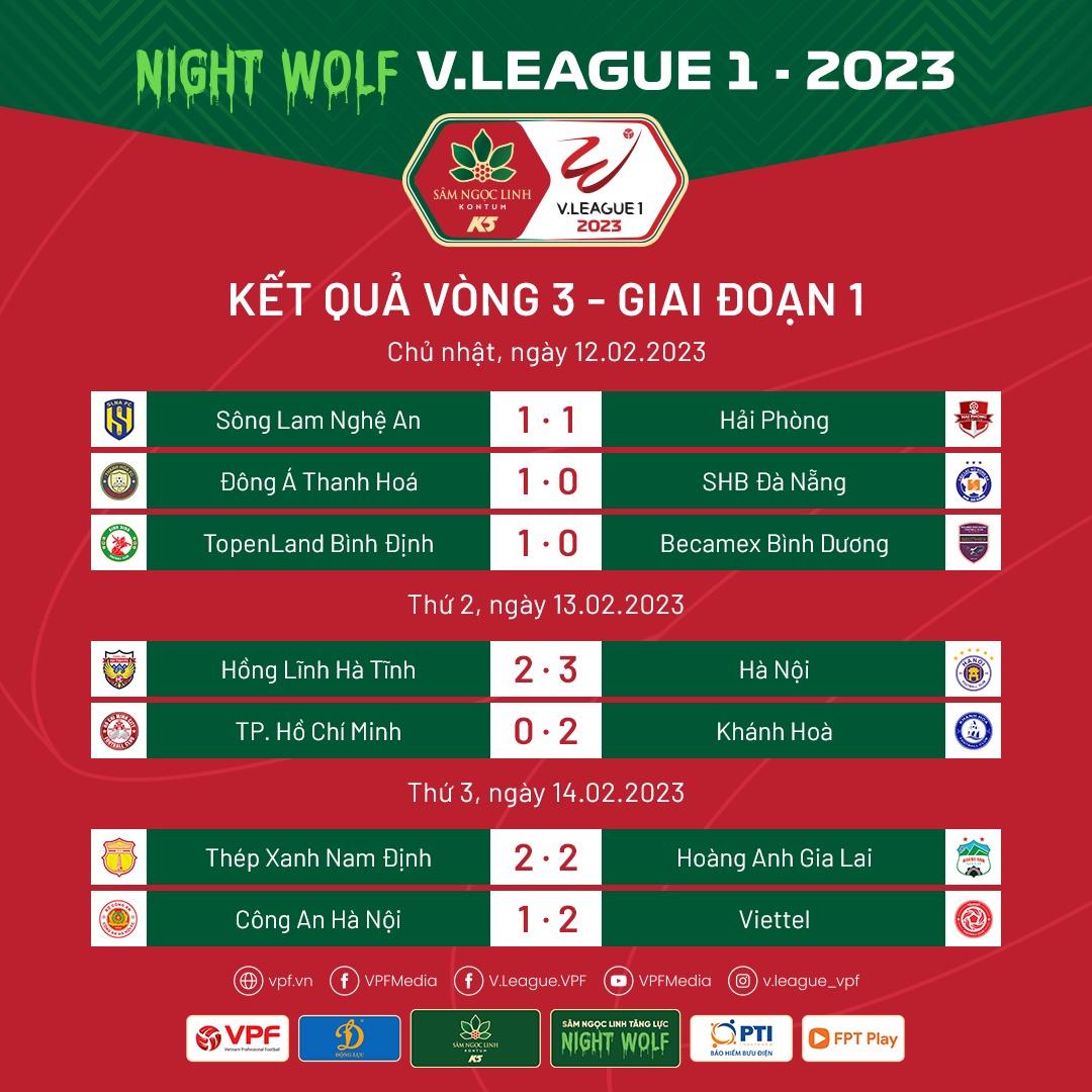 Tổng hợp kết quả các trận đấu thuộc vòng 3 V.League 2023.