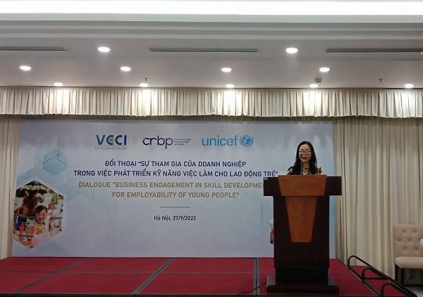 Tổng Thư ký VCCI khẳng định, là tổ chức quốc gia đại diện cho cộng đồng DN và doanh nhân Việt Nam, VCCI cam kết tiếp tục đồng hành cùng UNICEF xây dựng và thực hiện nhiều hoạt động thiết thực hỗ trợ DN trong việc nâng cao kỹ năng việc làm cho các bạn trẻ. Đồng thời kêu gọi sự tham gia và chung tay của tất cả các bên cùng với DN xây dựng những chương trình phát triển kỹ năng việc làm thực sự phù hợp cho các bạn trẻ trong tương lai.