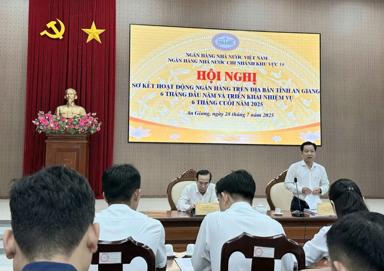 Sáng nay (ngày 28/7), ngành Ngân hàng Khu vực 15 tổ chức hội nghị sơ kết 6 tháng đầu năm và triển khai công tác ngân hàng 6 tháng cuối năm 2025 trên địa bàn tỉnh An Giang. Tham dự và chủ trì hội nghị có Lãnh đạo Ngân hàng Nhà nước Khu vực 15 và lãnh đạo các tổ chức tín dụng trên địa bàn tỉnh An Giang (mới).