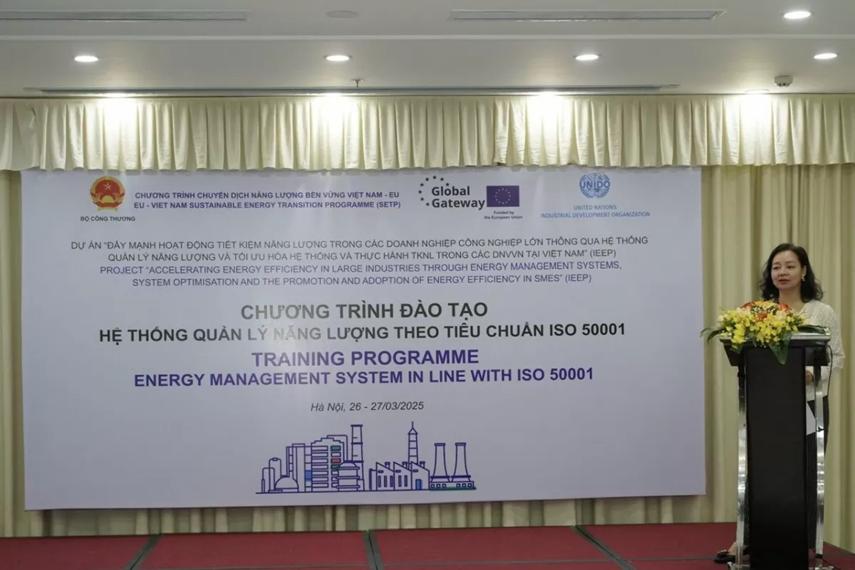Phát biểu khai mạc khóa đào tạo, bà Nguyễn Thị Lâm Giang - Cục trưởng Cục Đổi mới Sáng tạo, Chuyển đổi Xanh và Khuyến công, Bộ Công Thương đã nhấn mạnh ý nghĩa của việc áp dụng hệ thống quản lý năng lượng theo tiêu chuẩn ISO 50001.