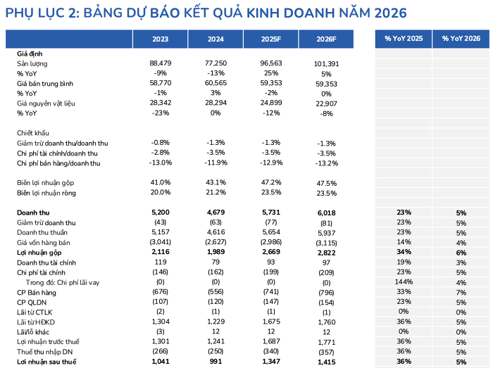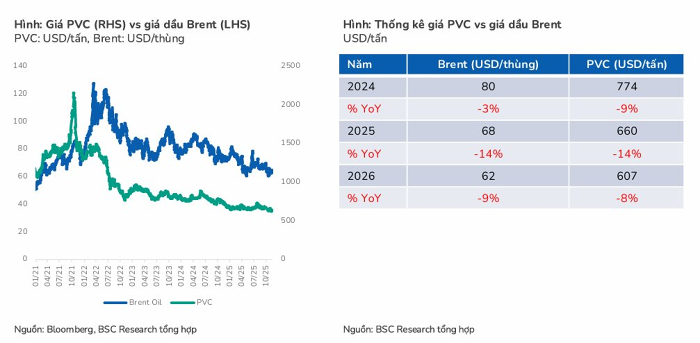 Ngoài ra, do hạt nhựa PVC đầu vào có nguồn gốc từ dầu mỏ, ACBS nhận định giá nguyên liệu sẽ tiếp tục duy trì ở mức thấp trong thời gian tới, được củng cố bởi dự báo giá dầu Brent năm 2026 có thể giảm về vùng 56-58 USD/thùng (theo Goldman Sachs và EIA). Diễn biến thuận lợi này đã giúp biên lợi nhuận gộp quý 3 của BMP đạt 47,2%, qua đó cân đối được phần chi phí bán hàng gia tăng.